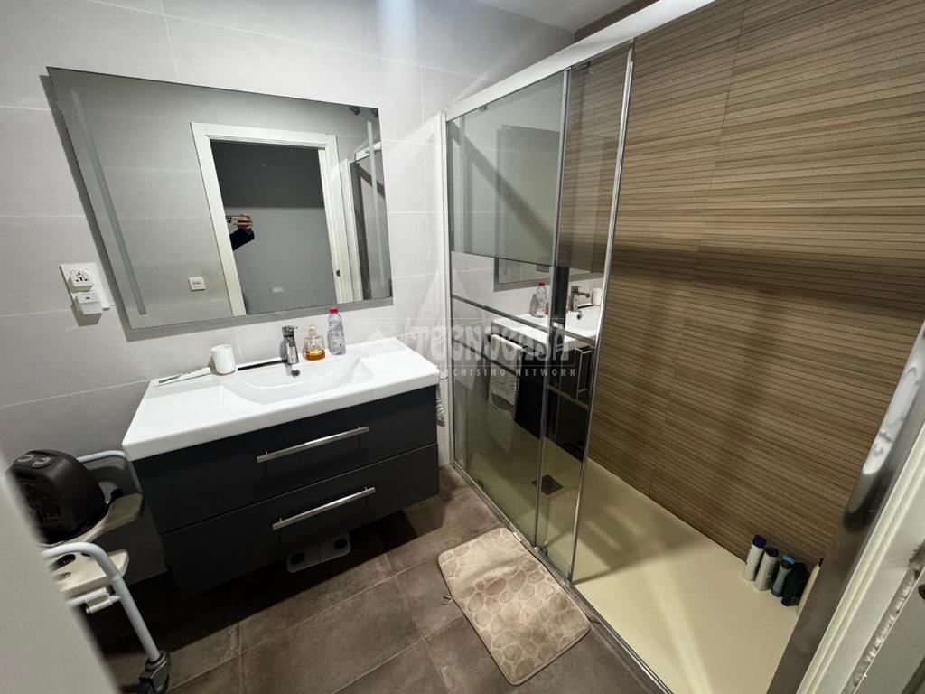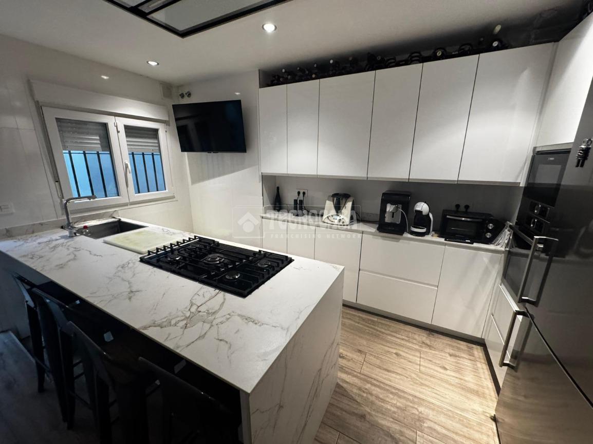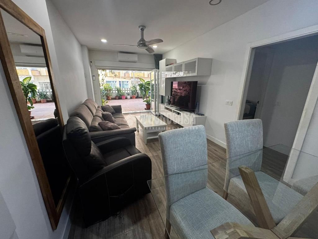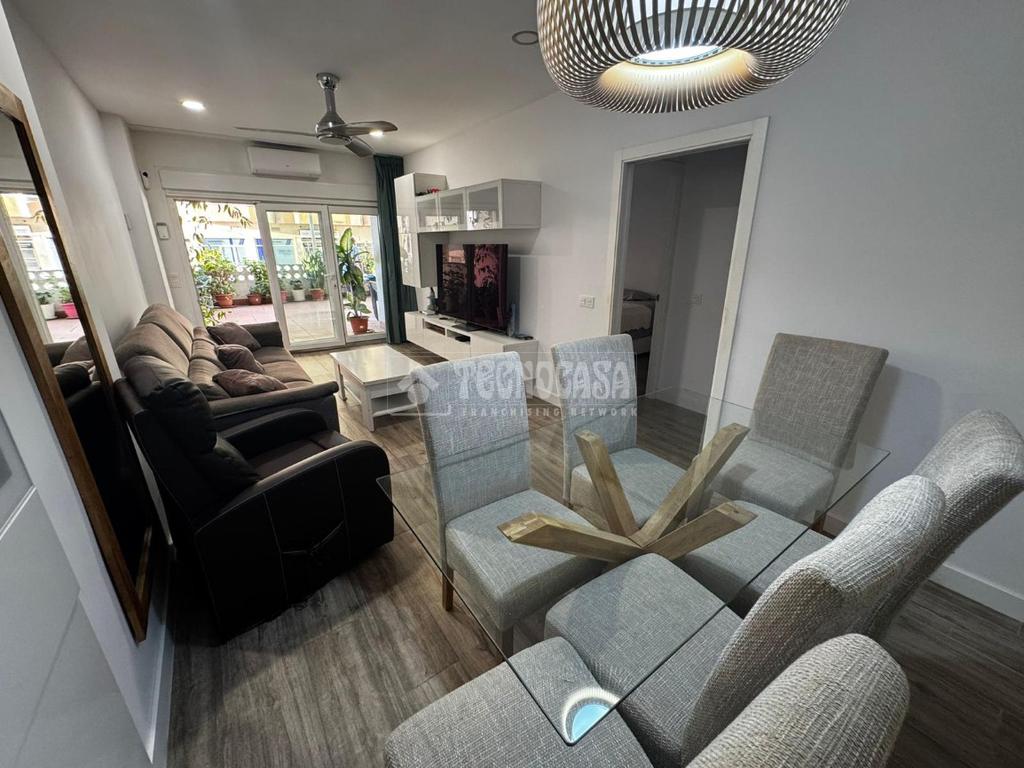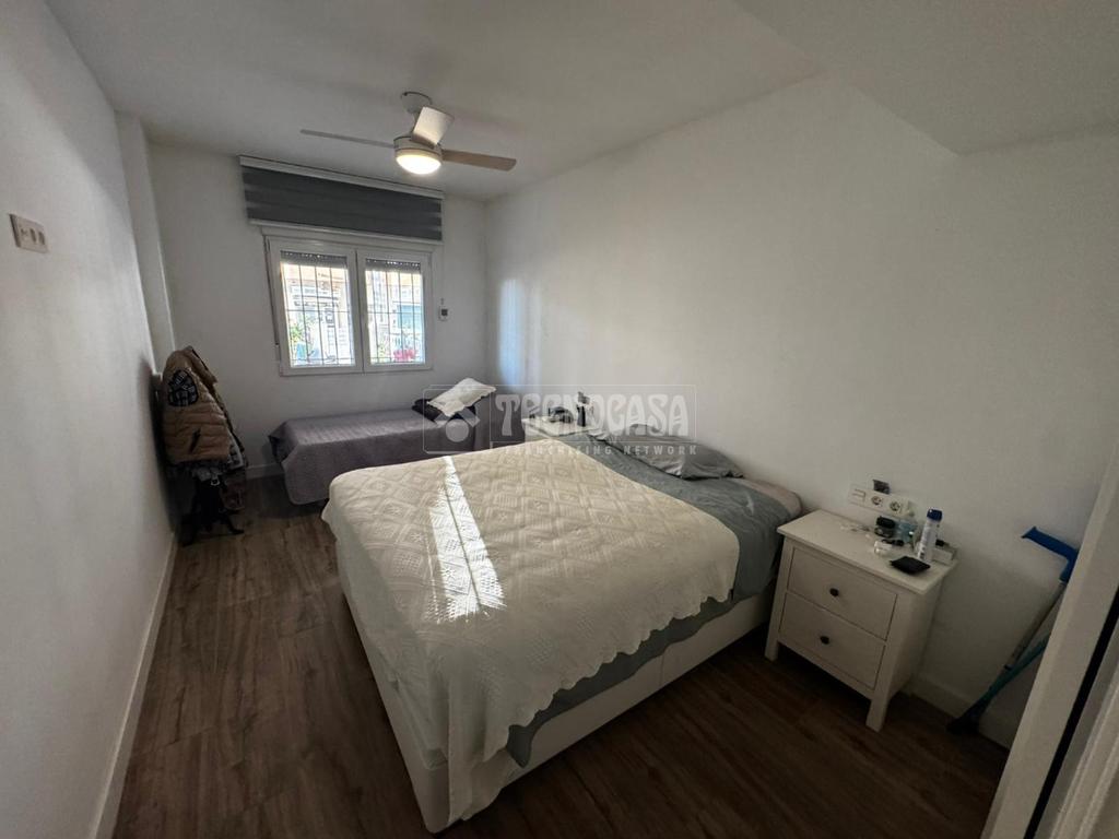 La cocina, moderna y funcional, se integra con elegancia en el conjunto gracias a su isleta central con campana en el techo, perfecta tanto para el día a día como para disfrutar de momentos en compañía. Los dos dormitorios son amplios y cuentan con armarios empotrados y ventiladores de techo, pensados para garantizar el máximo confort. Los dos baños, completamente reformados, disponen de placa de ducha y materiales de primera calidad, ofreciendo un diseño práctico y actual. Además, cuenta con un patio trasero que alberga la zona de lavadero, aportando comodidad y funcionalidad al día a día.