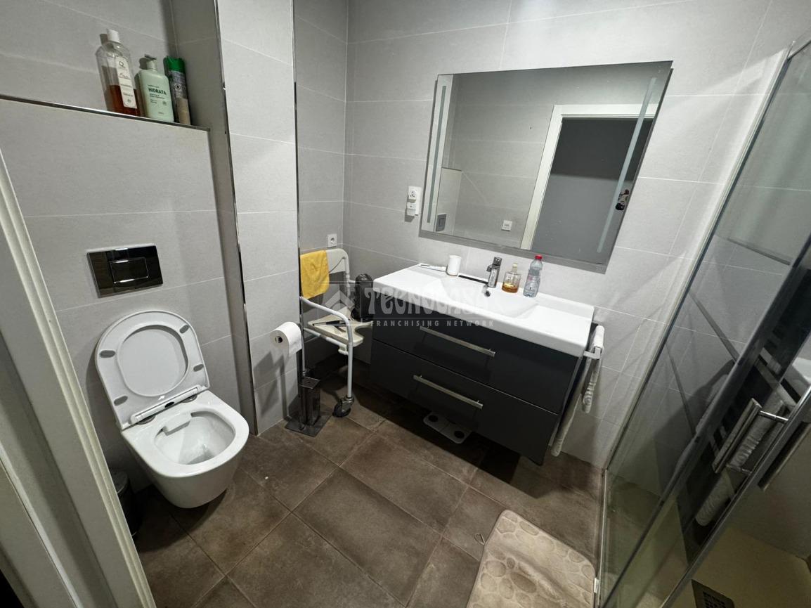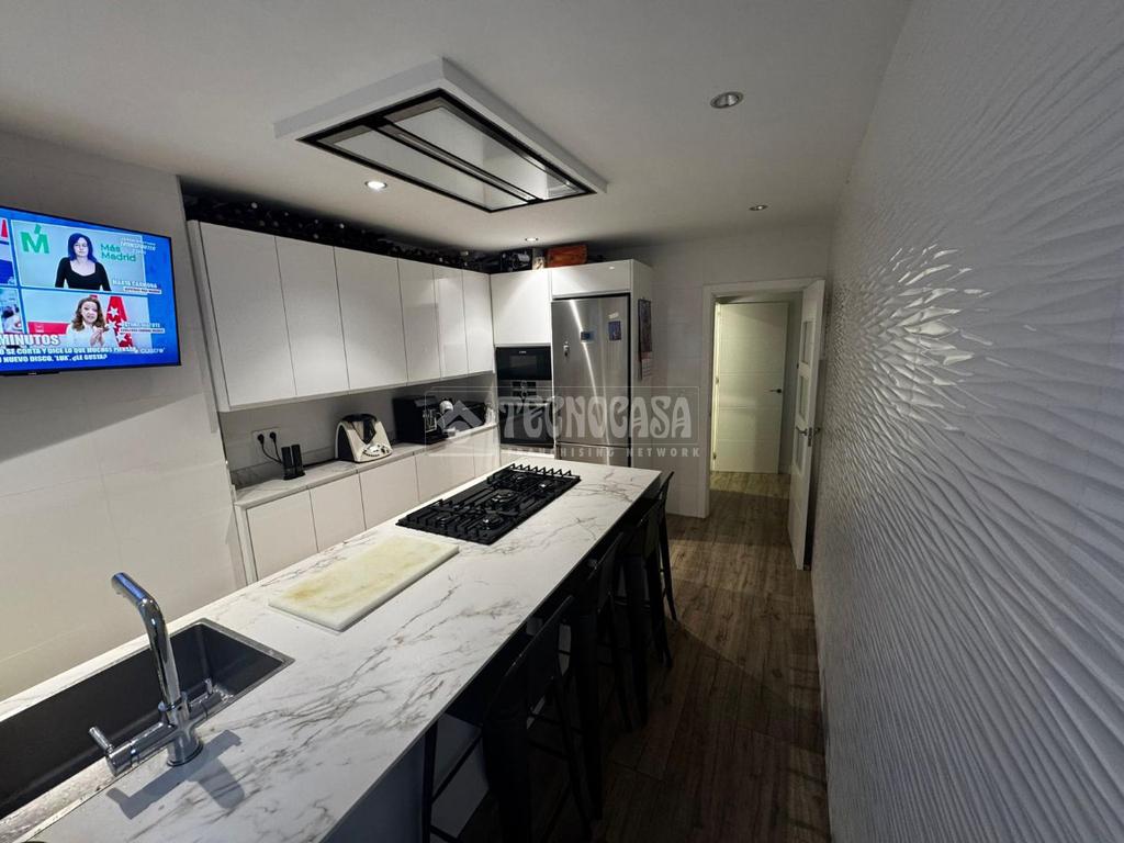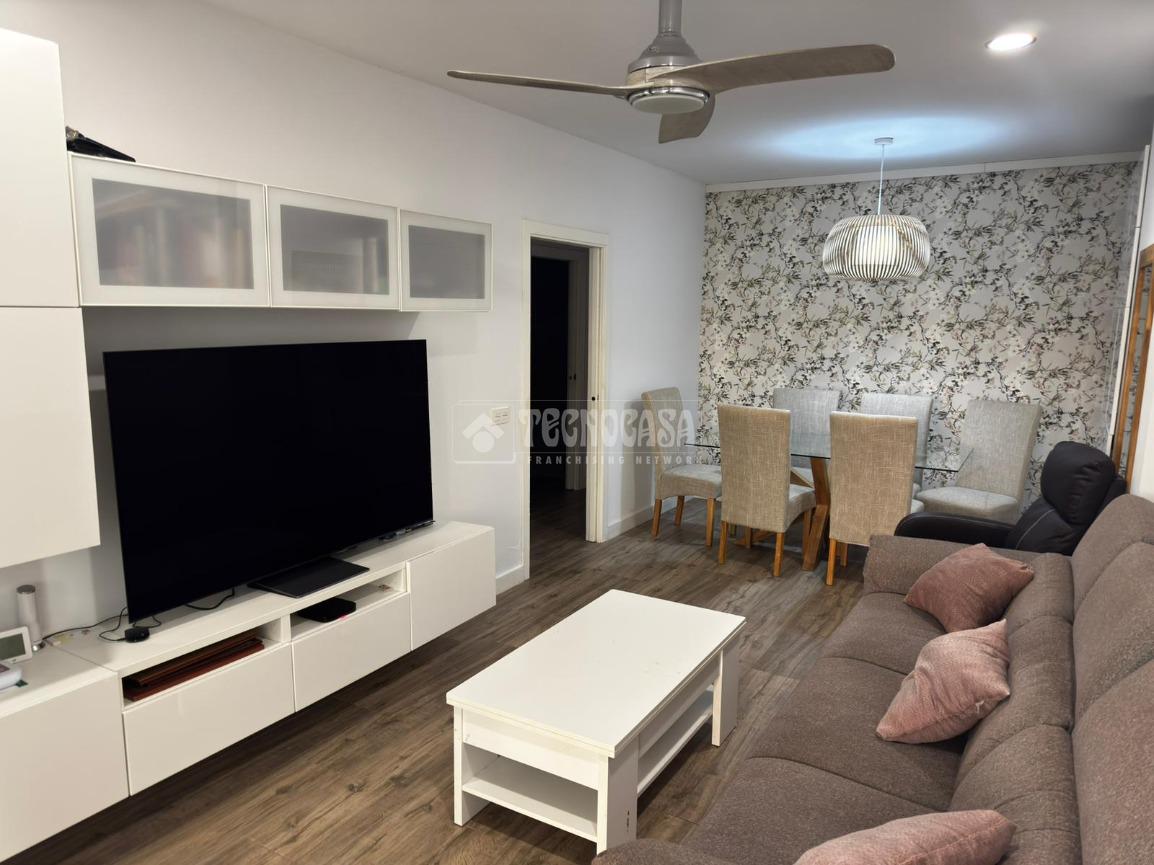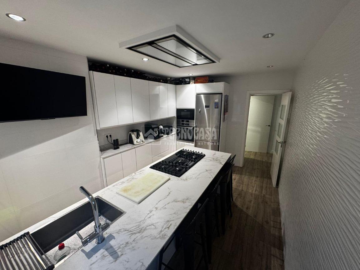 La cocina, moderna y funcional, se integra con elegancia en el conjunto gracias a su isleta central con campana en el techo, perfecta tanto para el día a día como para disfrutar de momentos en compañía. Los dos dormitorios son amplios y cuentan con armarios empotrados y ventiladores de techo, pensados para garantizar el máximo confort. Los dos baños, completamente reformados, disponen de placa de ducha y materiales de primera calidad, ofreciendo un diseño práctico y actual. Además, cuenta con un patio trasero que alberga la zona de lavadero, aportando comodidad y funcionalidad al día a día.