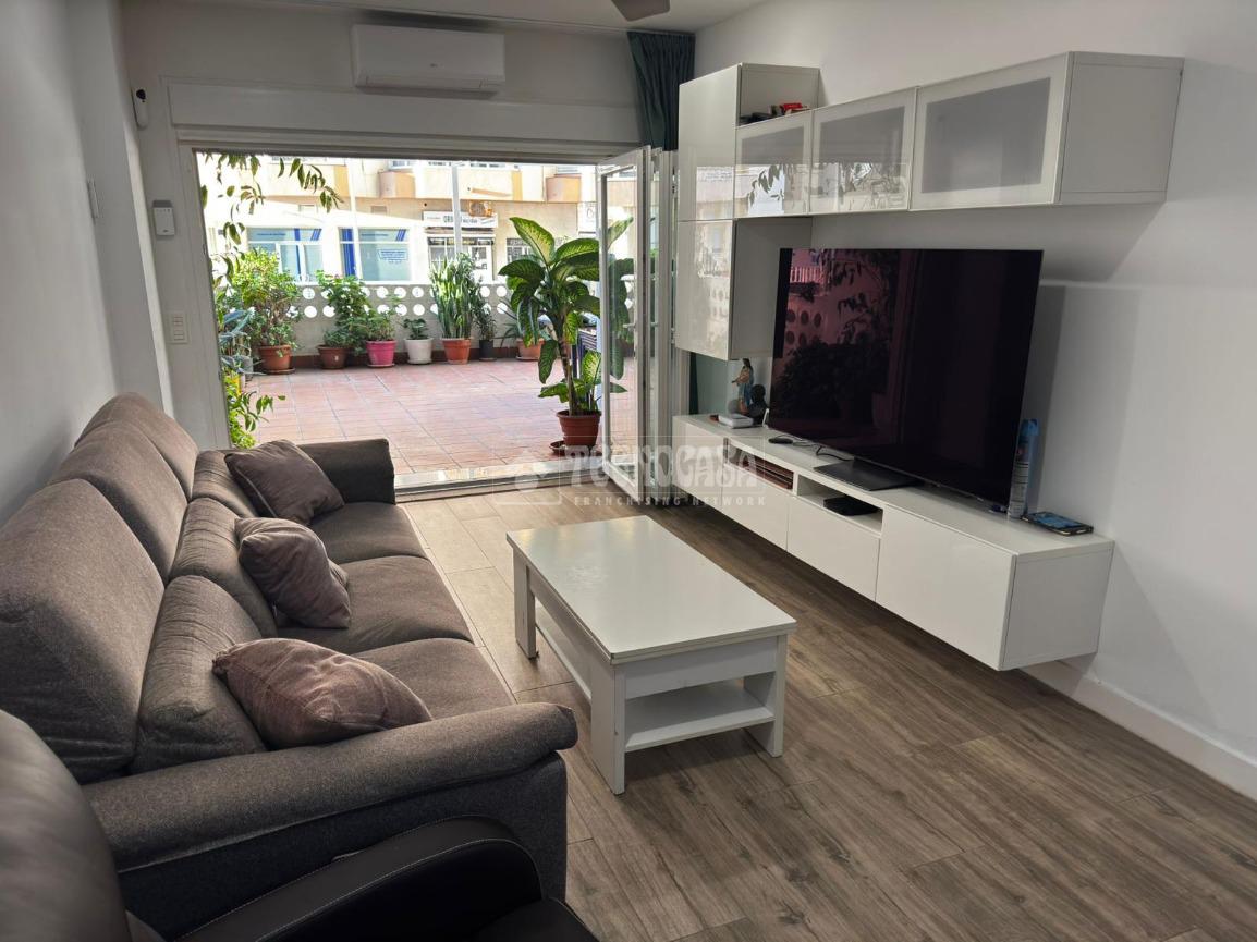 Nada más entrar, el espacio transmite una sensación de amplitud y bienestar, la vivienda sorprende con un magnífico patio principal de unos 36 m2, un espacio ideal para disfrutar del aire libre, organizar comidas o crear una zona chill out junto al sonido del mar. El salón, amplio y luminoso, cuenta con un gran ventanal abatible con cristales blindados que permite disfrutar de una agradable entrada de luz durante todo el día. El aire acondicionado asegura una temperatura ideal, mientras que los acabados modernos y los detalles de calidad aportan un toque contemporáneo y acogedor.